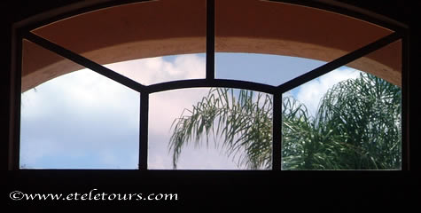 clouds framed by a window.