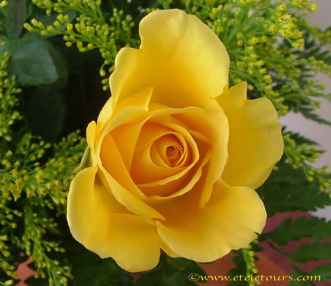 a single yellow rose from an arrangement of roses.