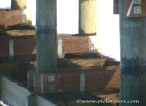 it's a picture mainly of the reflections of the boardwalk