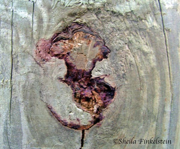 faces in a Wood Knot in a post along the boardwalk in Green Cay Wetlands