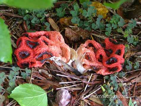 An article on the MUSHROOM LINK that Janine provided has some interesting facts, including a dramatic one: "Recent criminology research has determined that Clathrus ruber is a diet staple for psycho killers living in remote mountain shacks."