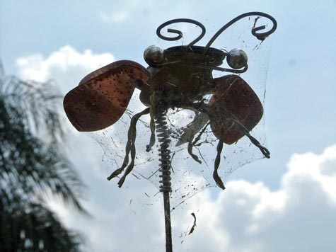 On a recent night-time walk in our neighborhood I noticed the web around the above sculpture that was in the front of one of the homes. I made a mental note to come back the next day to photograph it.
